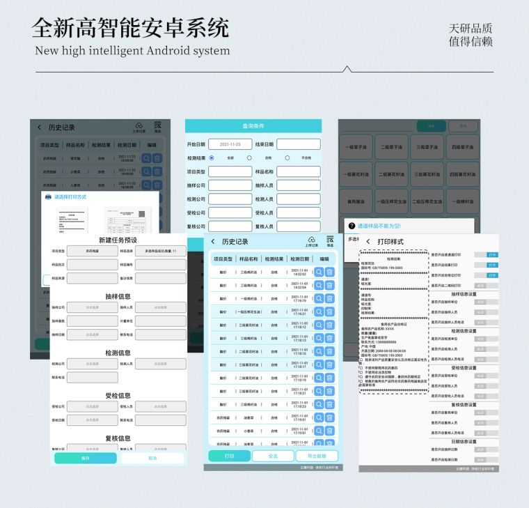 仪器具有任务预设模块,可在样品送检前提前预设样品名称、检测指标、送检单位等信息,样品送检时一键调取保存信息,检测更加方便快捷。