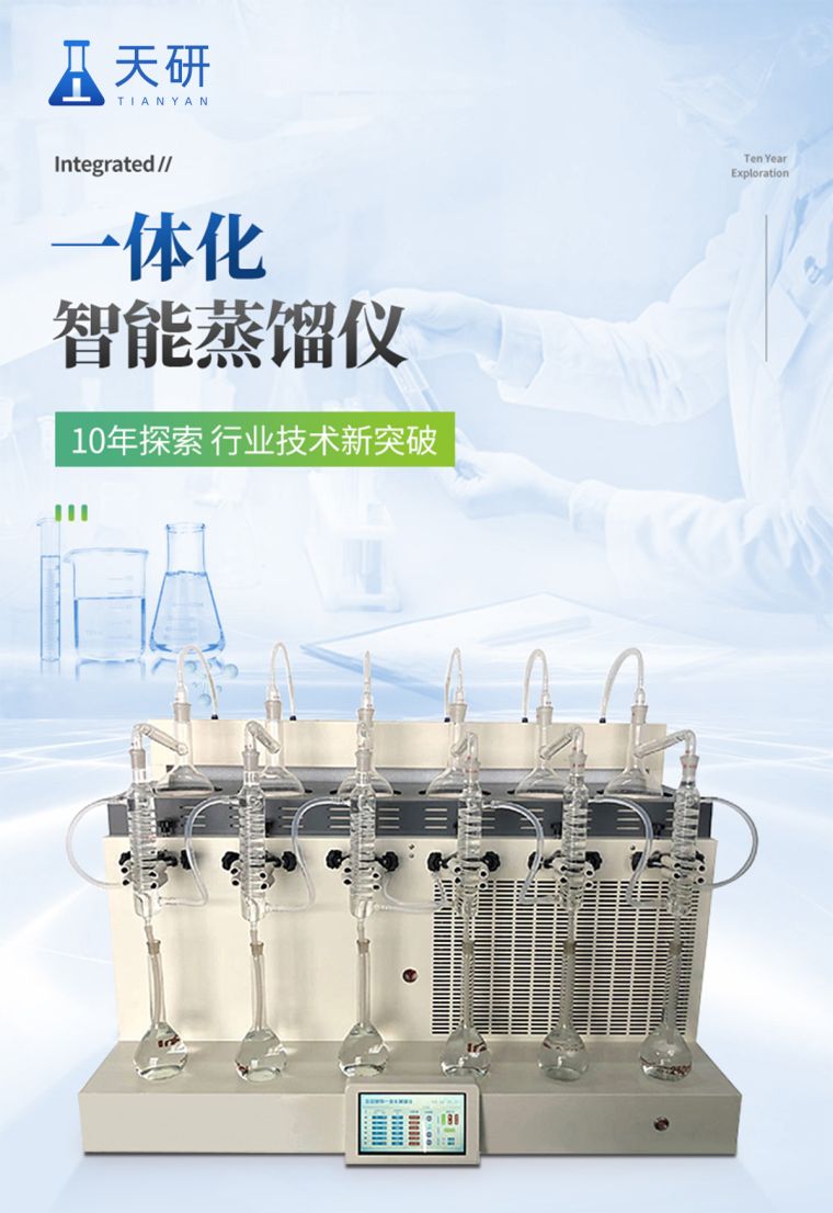 TY-ZL6智能一体化蒸馏仪是根据实验室蒸馏预处理操作规程,集恒温加热、蒸馏终点自动控制、冷却水循环于一体的新型智能蒸馏处理装置。