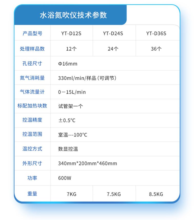 | YT-D36S | 36个 | Ф16mm | 330ml/min/样品(可调节) | 0-15L/min | 试管架一个 | ±0.5℃ | 室温-100℃ | 数显控温 | 340*200*460 | 600W | 8KG |