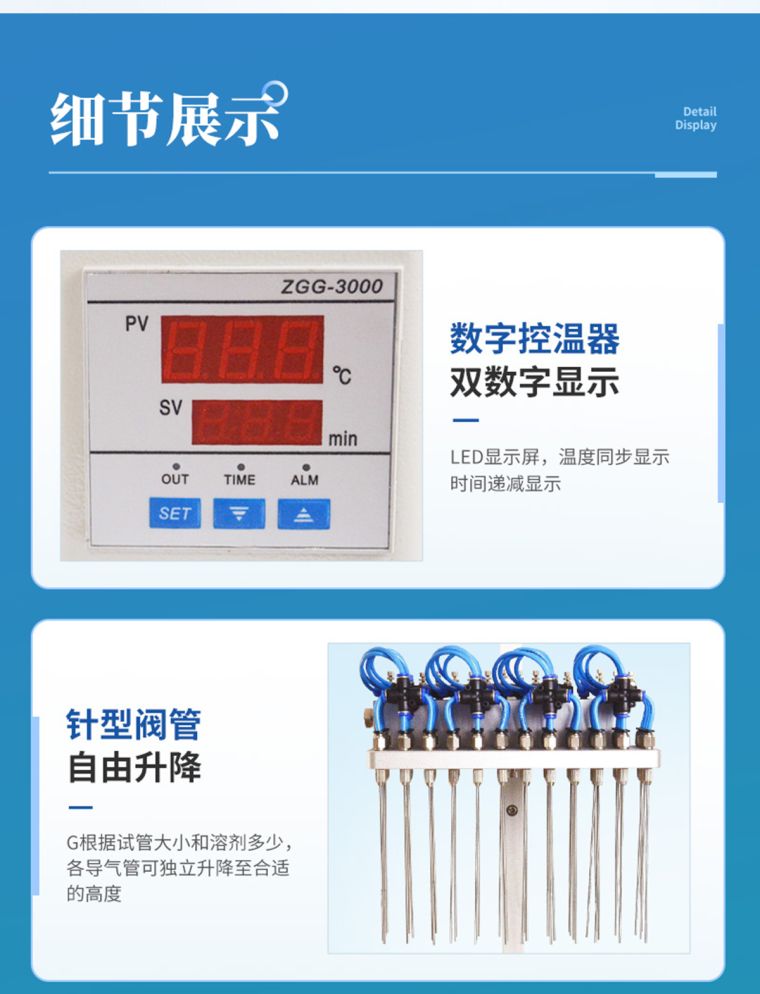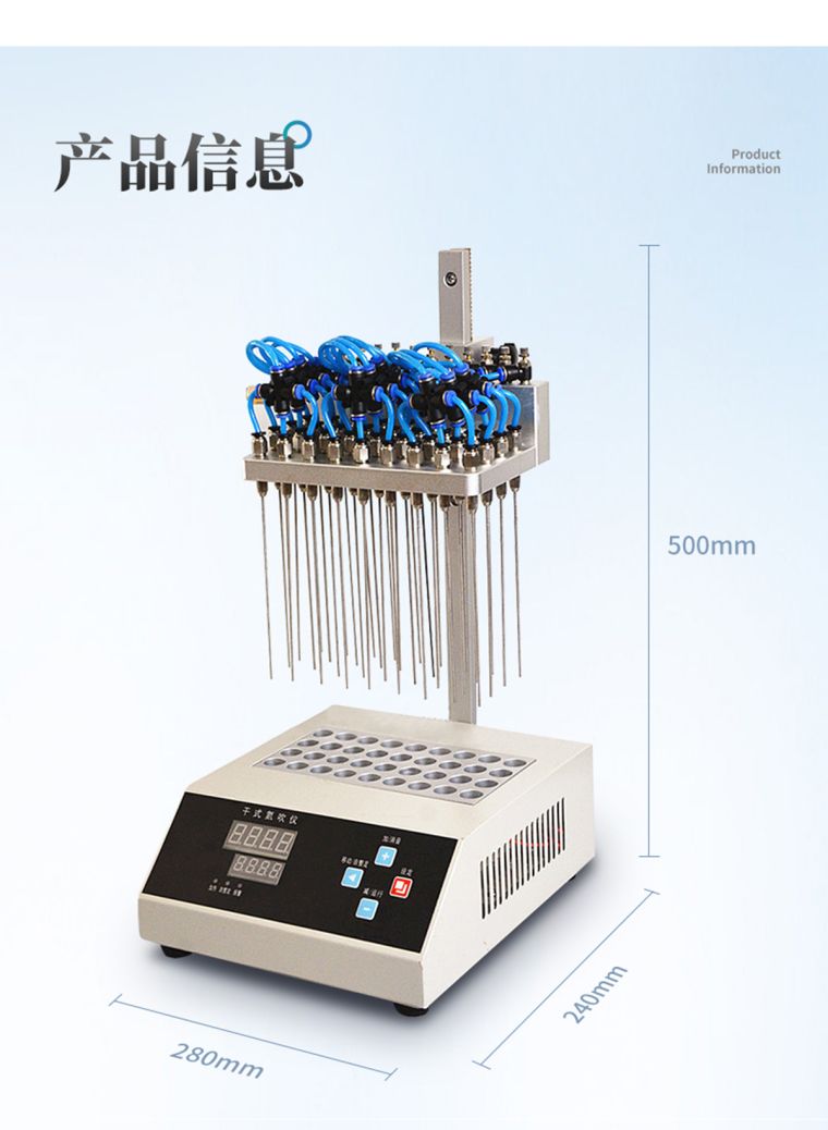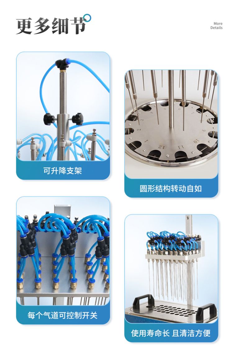 每一路气体流量可单独进行调节,克服了不可调氮吹仪各气路气流量大小不一的弱点。