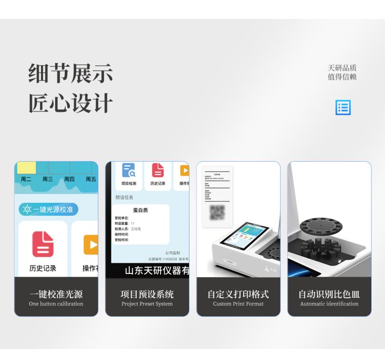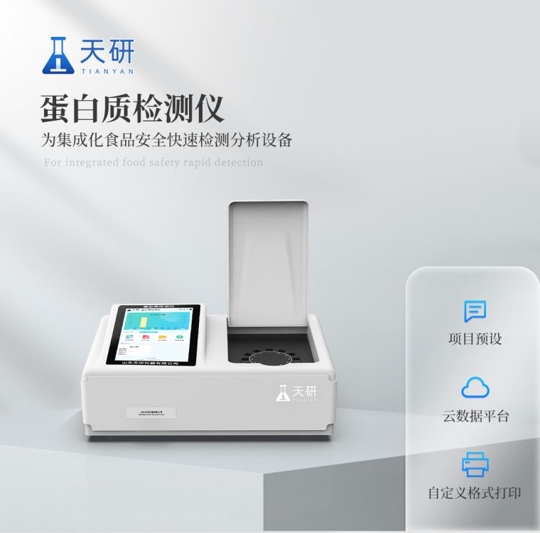 可快速检测奶粉、牛奶及乳制品中的蛋白质,仪器预留其他项目检测程序和端口,根据日后需求可方便的自主增加检测项目。
