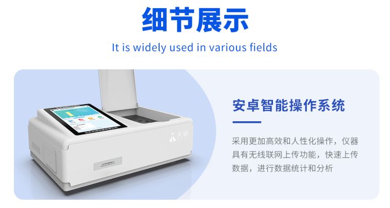 仪器采用台式一体化系统检测技术,将分光光度模块、新型农残检测模块、数字化管理模块、无线通讯模块高度集成于一体,支持检测200种食品安全检测项目,同时预留升级检测方法。