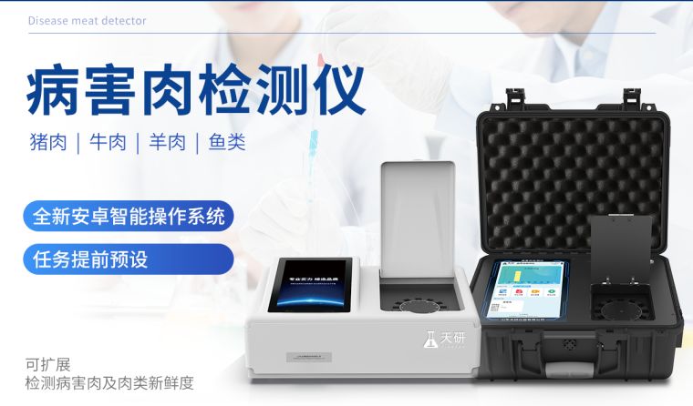 可快速检测病害肉、组胺、挥发性盐基氮,仪器预留其他项目检测程序和端口,根据日后需求可方便的自主增加检测项目。