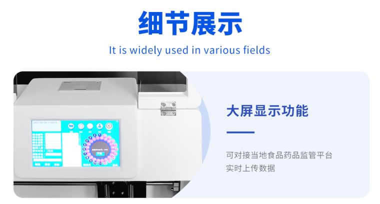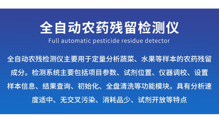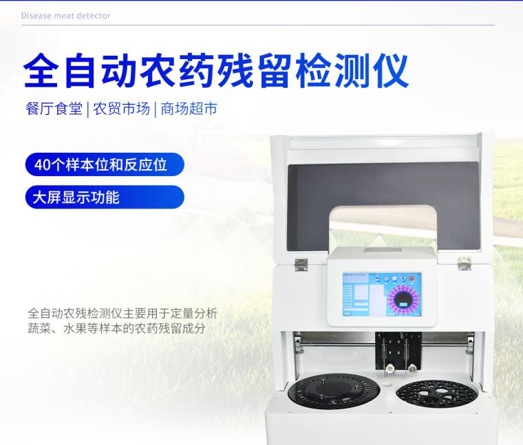 广泛应用于主要用于蔬菜、水果、茶叶、粮食、农副产品等食品中有机磷和氨基甲酸酯类农药残留的快速检测;此外还可用于果蔬茶生产基地和农贸批发销售市场现场检测,餐馆、学校、食堂、家庭果蔬加工前的安全速测等,为广大人民的生活安全提供保障。