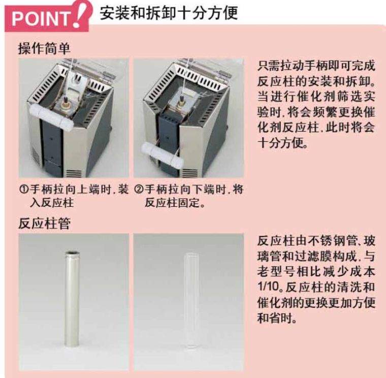 3、 反应柱在恒温槽内的固定操作十分简单,只需一个拉杆动作即可完成安装。