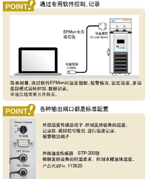6、 使用选配的外部温度传感器,可以对外部设备或者样品温度进行控制。