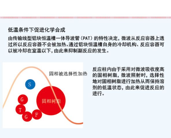 1、 通过铝块恒温槽的低温冷却控制,利用微波进行连续照射,在25℃低温条件下发挥微波的特有性能,在抑制副反应的同时对构成非天然氨基酸、糖氨基酸中的糖肽进行合成。