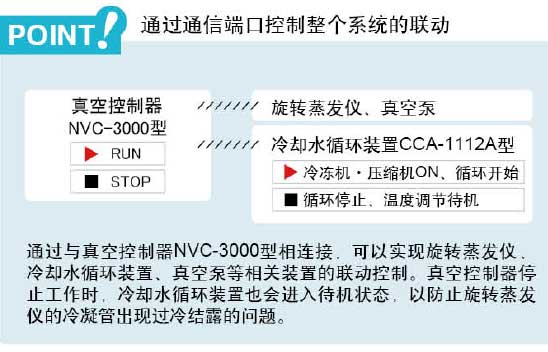 6、 配有与旋转蒸发仪N-1201B型通信专用接口,配有真空控制器NVC-3000型专用通信接口,通过真空控制器可以联动整个旋蒸系统使用。(仅限CCA-1112A·1122A型)