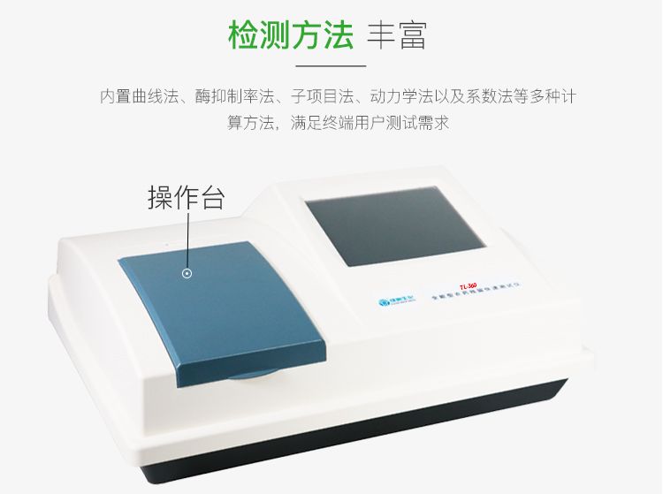 7、 测试方法丰富:内置曲线法、酶抑制率法、子项目法、动力学法以及系数法等多种计算方法,满足终端用户测试需求。