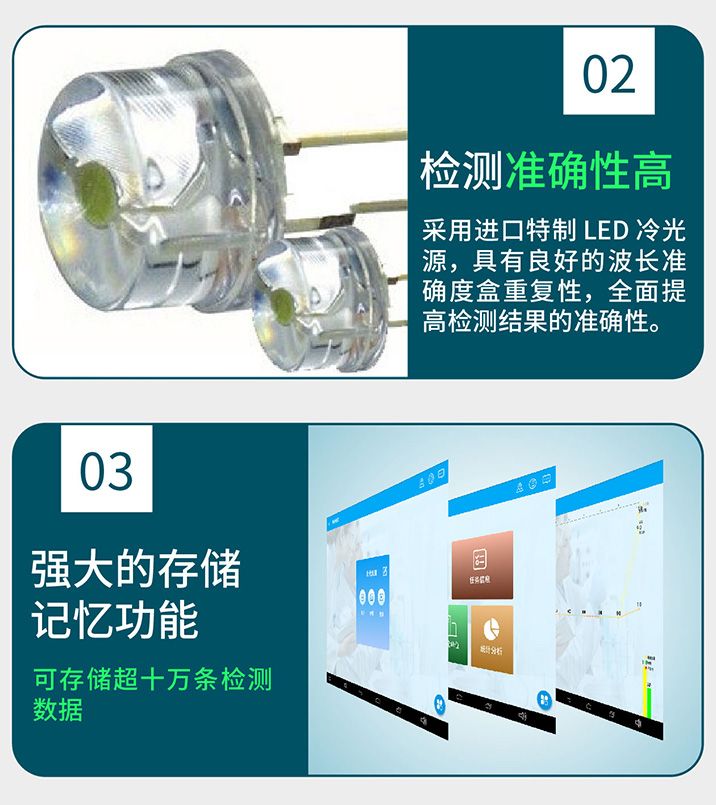 采用进口特制 LED 冷光源,具有良好的波长准确度盒重复性,全面提高检测结果的准确性。