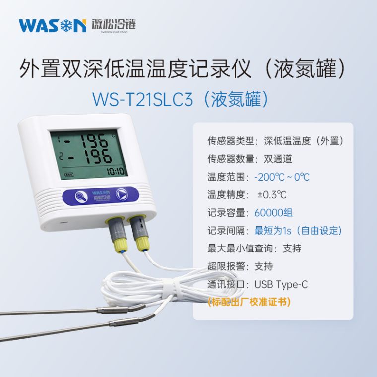 配件名称 | 外置深低温温度传感器(液氮罐) | 电源适配器 | Type-C数据线 |