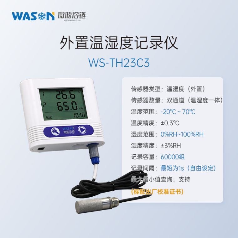 微松C3系列大屏显示温湿度记录仪是一款数据自动存储的单机型精密仪表。该仪表采用低功耗设计,待机时间长;传感器型号多,检测范围广;可外接声光报警器,实现高分贝声光报警。使用C-mi软件可实现参数设置、数据下载、数据分析、数据导出等功能,也可不使用C-mi软件直接从记录仪内拷贝CSV格式数据。广泛应用于食品医药、临床实验、化工电子、档案文博、农业科研等领域。