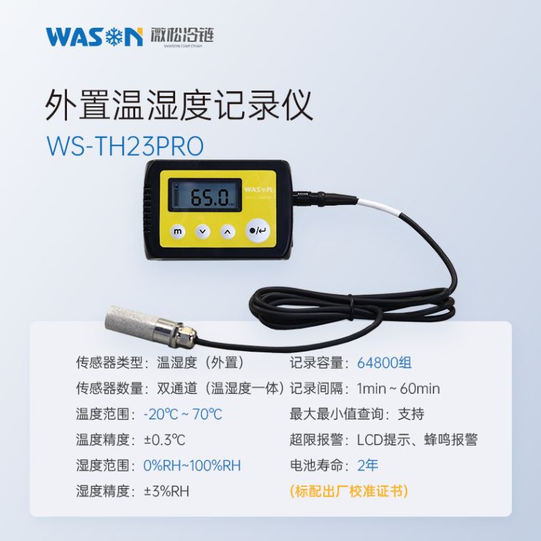 微松微松PRO系列温湿度记录仪是一款数据自动存储的单机型精密仪表。该仪表采用低功耗设计,待机时间长;双腔结构,防水等级高;传感器型号多,检测范围广。使用C-mi软件可实现参数设置、数据下载、数据分析、数据导出等功能,也可不使用C-mi软件直接从记录仪内拷贝CSV格式数据。广泛应用于食品医药、冷链物流、化工电子、档案文博、农业科研等领域。