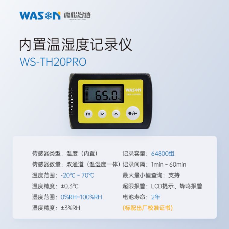 微松微松PRO系列温湿度记录仪是一款数据自动存储的单机型精密仪表。该仪表采用低功耗设计,待机时间长;双腔结构,防水等级高;传感器型号多,检测范围广。使用C-mi软件可实现参数设置、数据下载、数据分析、数据导出等功能,也可不使用C-mi软件直接从记录仪内拷贝CSV格式数据。广泛应用于食品医药、冷链物流、化工电子、档案文博、农业科研等领域。