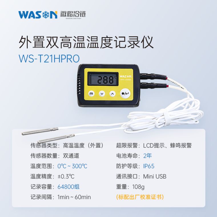微松微松PRO系列温湿度记录仪是一款数据自动存储的单机型精密仪表。该仪表采用低功耗设计,待机时间长;双腔结构,防水等级高;传感器型号多,检测范围广。使用C-mi软件可实现参数设置、数据下载、数据分析、数据导出等功能,也可不使用C-mi软件直接从记录仪内拷贝CSV格式数据。广泛应用于食品医药、冷链物流、化工电子、档案文博、农业科研等领域。