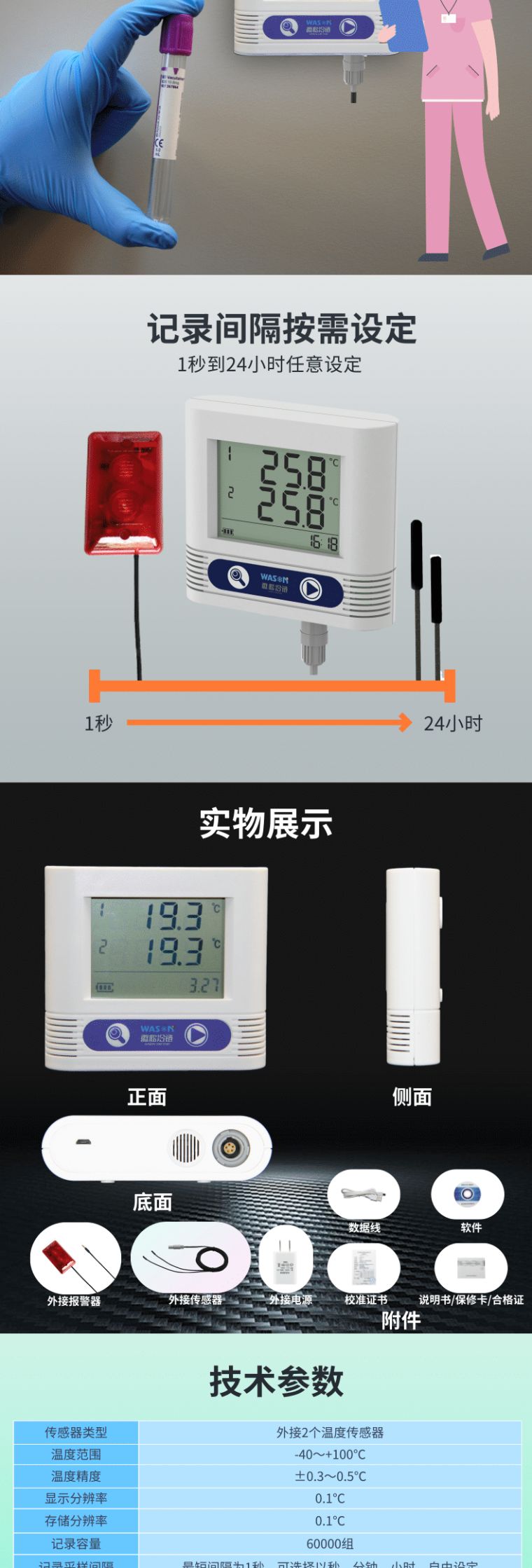 记录采样间隔 | 最短间隔为1秒,可选择以秒、分钟、小时,自由设定 |