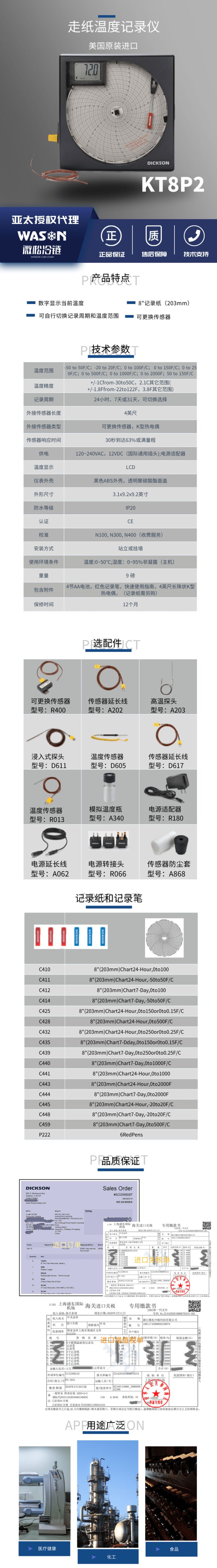 KT8P2走纸温度记录仪配备8英寸记录纸和K型热电偶,带有LCD温度显示,8英寸的记录纸和LCD当前温度显示确保了该走纸温度记录仪的便携性和高精度。配备有可更换传感器。