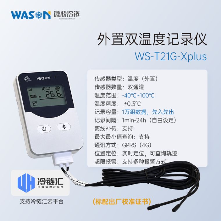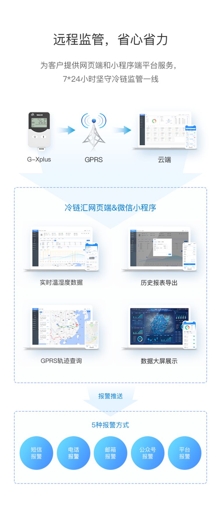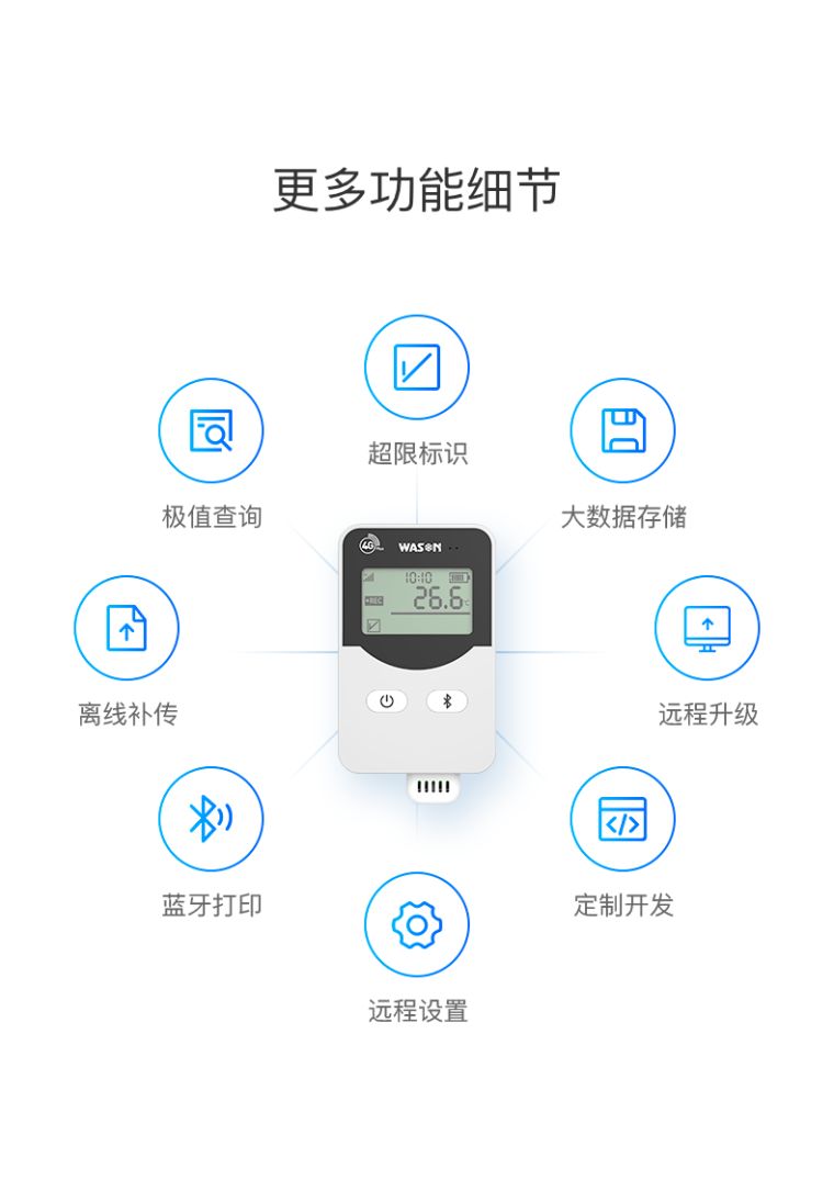 微松G-Xplus系列温湿度记录仪是一款4G传输的网络型智能仪表,符合GSP/GMP规范。可实现远程温湿度监测、实时定位、蓝牙打印、超限报警、开关门报警等功能,同时具有**的续航能力。通过冷链汇云平台可实现记录仪参数远程设置、历史数据和位置轨迹查询。广泛应用于医药冷链、食品生鲜等行业,可配合保温箱嵌入使用。