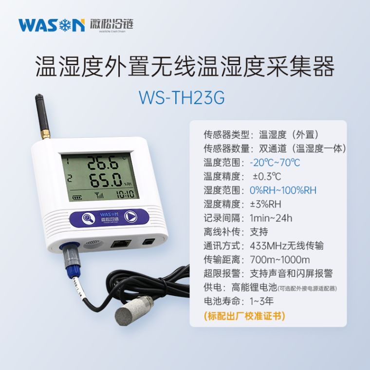 微松G系列无线温湿监测系统是由G系列无线温湿度采集器(监测终端)、G5plus无线管理主机、本地软件或冷链汇云平台组成。能对环境温湿度实现轻松组网监测,软件功能强大丰富,用户使用方便,可随时随地通过电脑或手机查看。广泛应用于食品医药、检验检疫、化工电子、档案文博等领域。