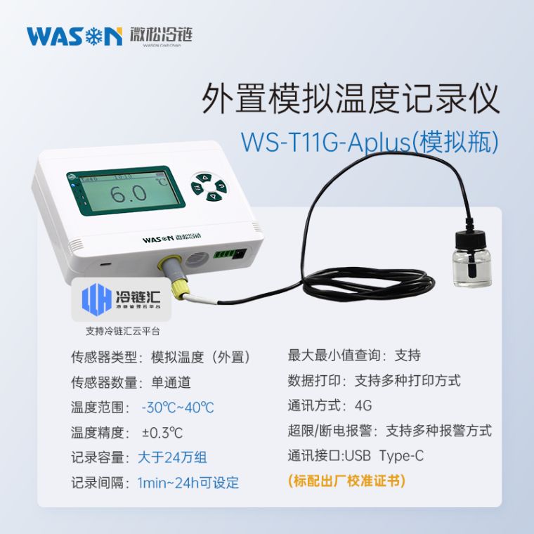 微松G-Aplus系列温湿度记录仪是一款4G传输的网络型智能仪表,符合GSP/GMP规范。传感器型号多,检测范围广;可外接声光报警器,实现高分贝声光报警;GPRS(4G)传输,距离不受限制;自带内存,离线数据自动补传;蓝牙通讯,可配专用蓝牙打印机直接现场打印数据;连接专用冷链汇云平台,实现电脑和手机端远程数据管理,超限报警、断电报警等功能。广泛应用于食品医药、临床实验、化工电子、档案文博、农业科研等领域。