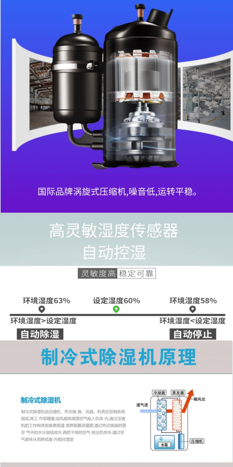 3、电脑房和实验室的除湿。商品储藏、地下工程以及电脑室、资料室、档案室、仓库、浴室等高湿度场所