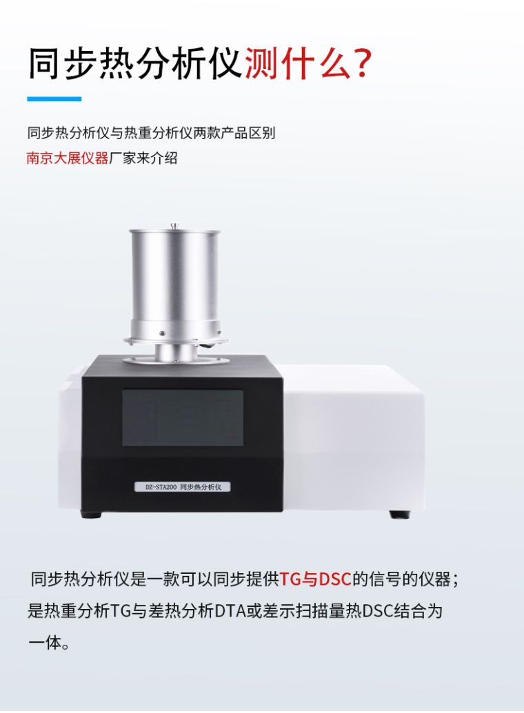 同步热分析将热重分析TG与差热分析DTA或差示扫描量热DSC结合为一体,在同一次测量中利用同一样品可同步得到TG与DTA或DSC的信息。