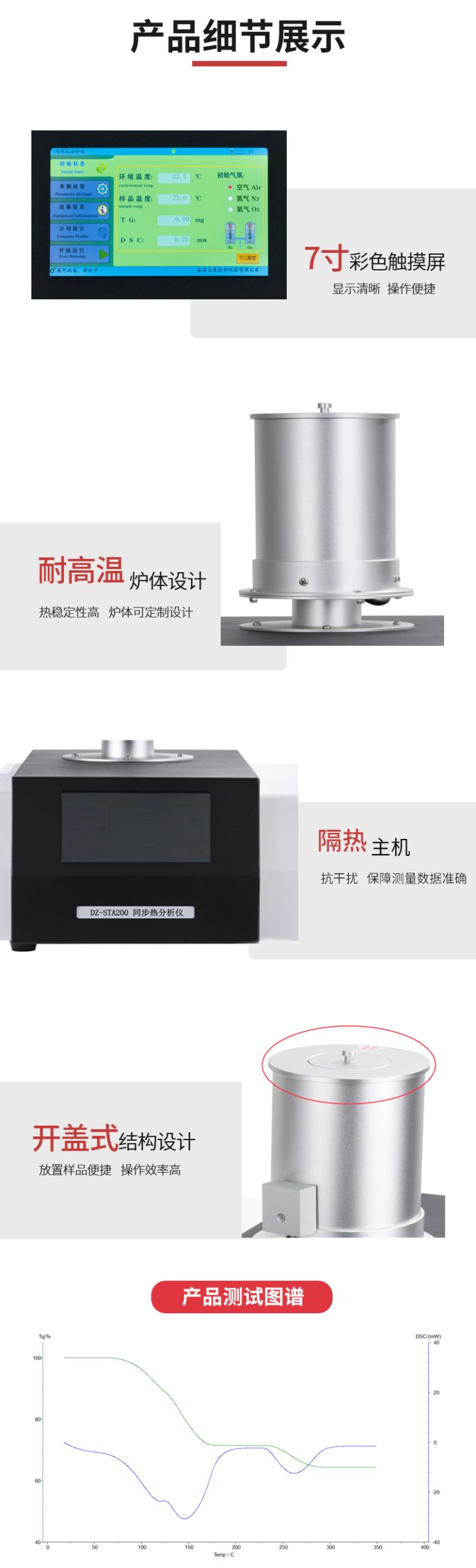 5.主机采用隔热装置隔绝加热炉体对机箱及微热天平的热影响。