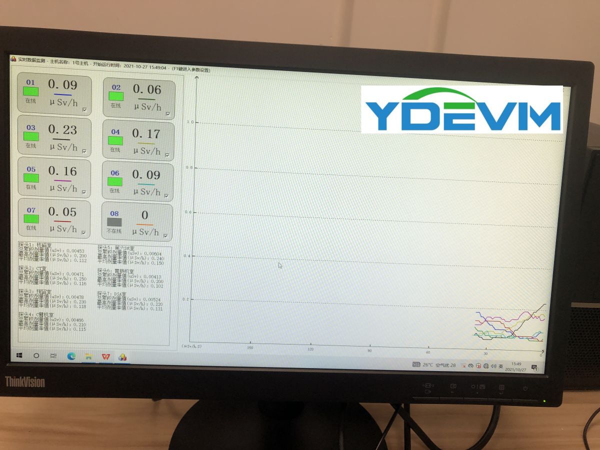 X、γ射线区域辐射监测仪是一种对射线的连续监测报警装置,它使用了高速的嵌入式微处理器与大屏IPS触摸液晶显示器,满足仪器能够实时监测、快速响应;同时保证了操作上的简便与人性化。主机和探头之间采用了可靠的通讯方式,保证了主机能实时显示每个探头的具体剂量率,并能实时指示出探头的当前监测数据与状态。另可根据现场要求,选配辐射区域监测软件。