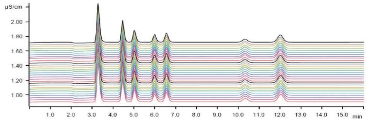 集成型智能离子色谱具有的自动监控和控制功能,保证了仪器系统的稳定性和分析结果的可靠性。若在分析过程中发生错误,系统可以进行干预并且自动纠错。
