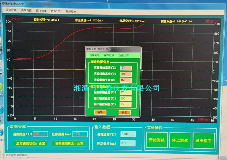 5、计算机自动计算膨胀系数、体膨胀、线性膨胀量。