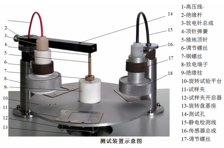 在实验室条件下,适用于测定纤维、纱线、织物、地毯、装饰织物和其它各品种织物或各种板状制成品的静电性能。仪器主机由电晕放电装置和探头检测器组成。利用给定的高压电场,对织物定时间放电,使织物感应静电,从而进行静电电量大小、静电压衰减的半衰期、静电残留量的检测,以显示被测织物的带静电性能
