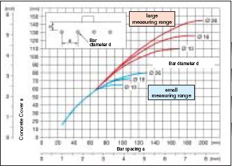 利用预先设定限制值,移动探头就可检测出保护层不足的地方,