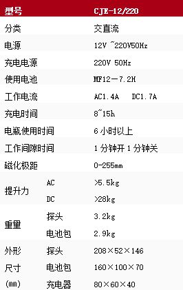 CJE系列微型磁轭探伤仪有交流、直流、交直流两用磁粉探伤仪,直流供电电源为可充电池,适用于野外无电源现场操作以及高压不能进入的容器、桥梁、管道等现场操作,满电连续工作时间可达6小时以上。交流供电电源采用~220V电源直接输入,不用其他仪器配套,操作方便、简单、重量轻、便于携带,因而该仪器得到使用。