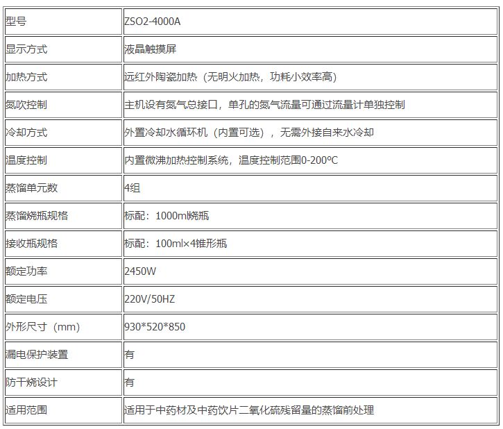 药典中所提供的检测方法的主要原理是将中药材以蒸馏法进行处理,样品中的亚硫酸盐系列物质加酸处理后转化为二氧化硫后,随氮气流带入到含有双氧水的吸收瓶中,双氧水将其氧化为硫酸根离子,采用酸碱滴定法测定,计算药材及饮片中的二氧化硫残留量。本产品在严格遵循药典要求的基础上,整合加热,蒸馏,水循环及氮吹等功能为一体,可同时提供3-5个样品(空白样,平行样)的处理,从而极大的提高了检测数据的精度和减少了工作时间。