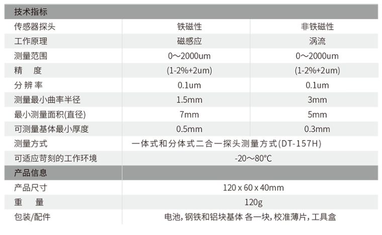 可测量任何磁性物质表面的非磁性涂镀层测厚度可测量任何非磁性金属表面的绝缘涂镀层厚度