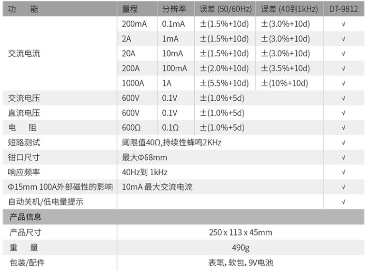 CEM DT-9812 1000A交流泄漏电流钳形表,双注塑机壳,坚固的机身,高安全保护性能,是为专业用户而设计的,带模拟条的双屏背光大液晶屏显示更加快捷和方便的读取数据,高精度和多指标的测量,是专业泄漏电流测量的电力工具,安全、大量程、多指标测量为电力行业专门设计。