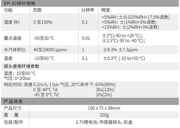 CEM DT-8321是CEM华盛昌新设计、研发和制造的一款高精度专业手持式露点仪,精度高范围广,能在较宽的测量范围内准确测量露点温度;探头可直接插入加压过程中,并快速响应和测试过程环境条件,为工业露点测量应用提供准确快速的测量,广泛应用于在实验室、电力电气、SF6气体测量、精密制造、化工制药等领域的大温度、大压力范围内的直接过程露点测量。