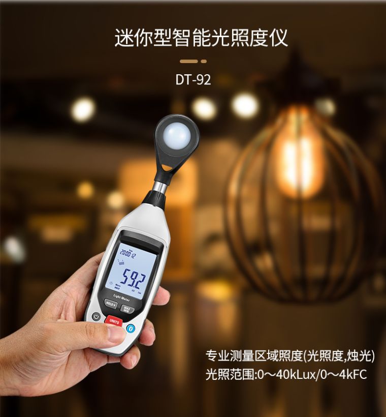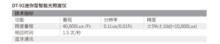 DT-92是CEM华盛昌新设计、研发、生产和推向市场的一款迷你型智能光照度仪,符合人体工程学设计,方便握持和测量,可随身携带。是一种用于测量区域照度(光照度,烛光)的精密仪表。该照度计体积小,坚固,操作方便。使用的光敏元件由非常稳定耐用的硅光电二极管和光谱响应滤波器组成。针对不同角度的光输入,可进行充分的补偿和调节。带蓝牙功能,方便随时随地记录和保持数据,适合各类环境测量应用领域。