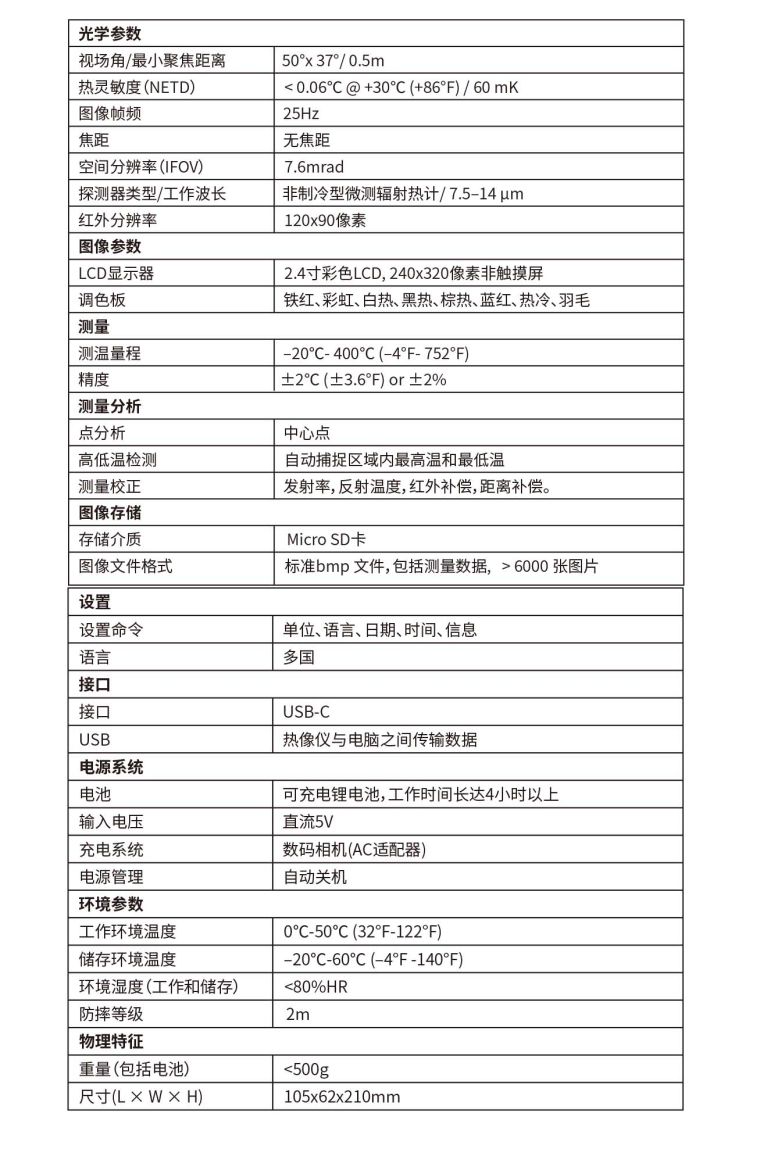 1、红外分辨率:120x90像素