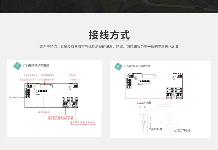 ◆ 两组开关量信号输出,可联动延伸报警器、风机或电磁阀。