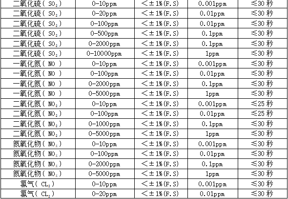 分 辨 率:0.01ppm或0.001ppm(0~10 ppm),0.01ppm(0~100 ppm),0.1ppm(0~1000 ppm),1ppm(0~1000 ppm以上),0.01毫克/升(0~200%毫克/升),0.1%LEL,0.01%,0.001%Vol