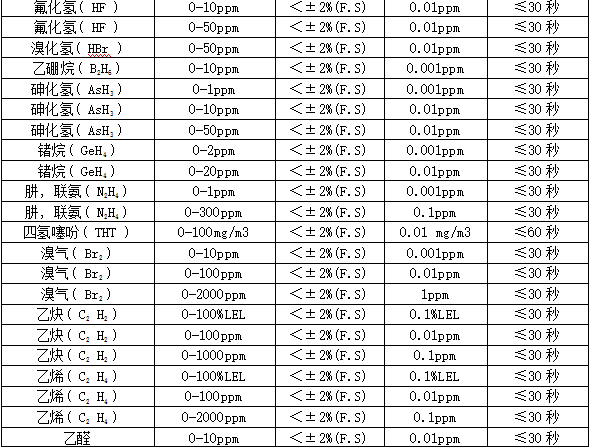 分 辨 率:0.01ppm或0.001ppm(0~10 ppm);0.01ppm(0~100 ppm),0.1ppm(0~1000 ppm),1ppm(0~1000 ppm以上),0.01毫克/升(0~200%毫克/升),0.1%LEL,0.01%,0.001%Vol