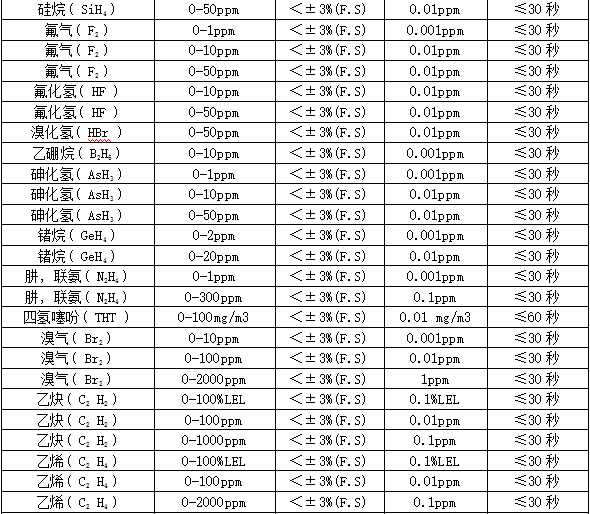 部分可检测气体列表: