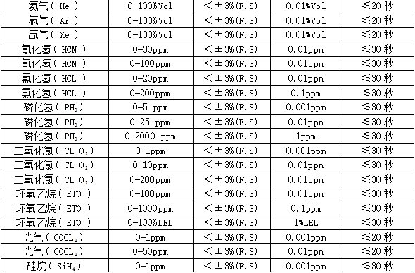 部分可检测气体列表: