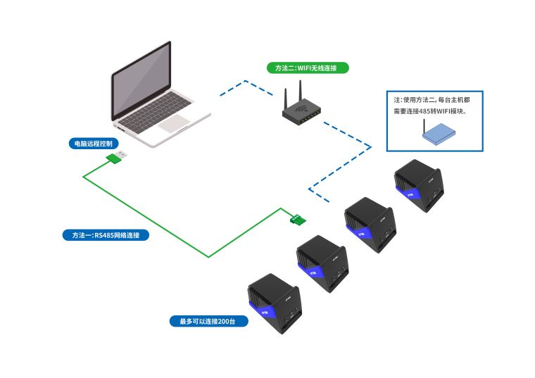 ● 机器提供RS-485通讯联网接口,实现远程操控