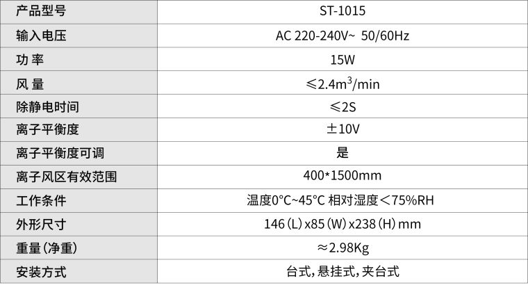 套餐包含离子风机主机一台,说明书一本,电源线一条,接地线一条.