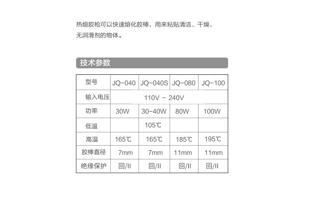 套餐包含JQ-040热熔胶枪 : 1支,说明书: 1本
