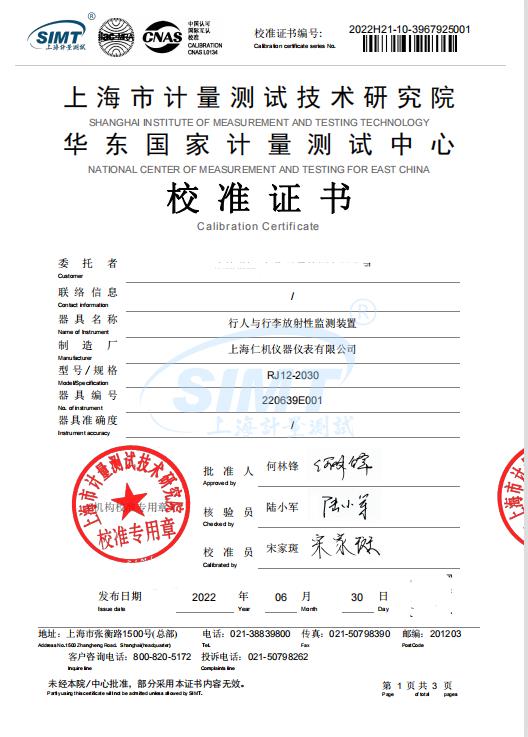 JJF1266-2010 行人与行李放射性监测装置校准规范