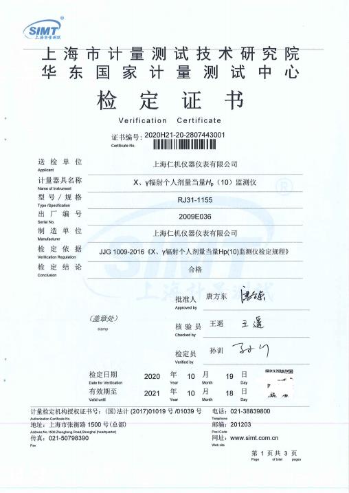 固定式场所辐射检...计量检测报告