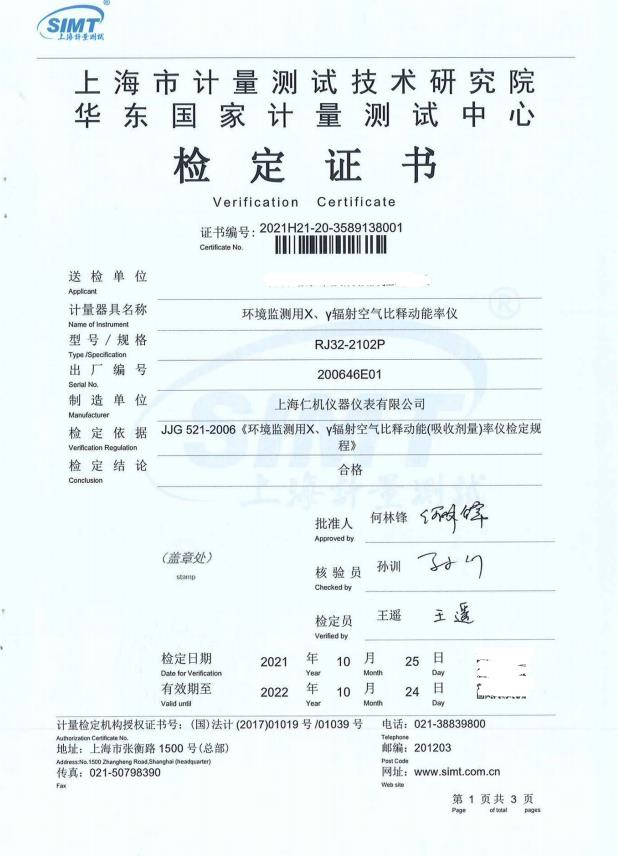 智能化X 、γ辐射...计量检测报告
